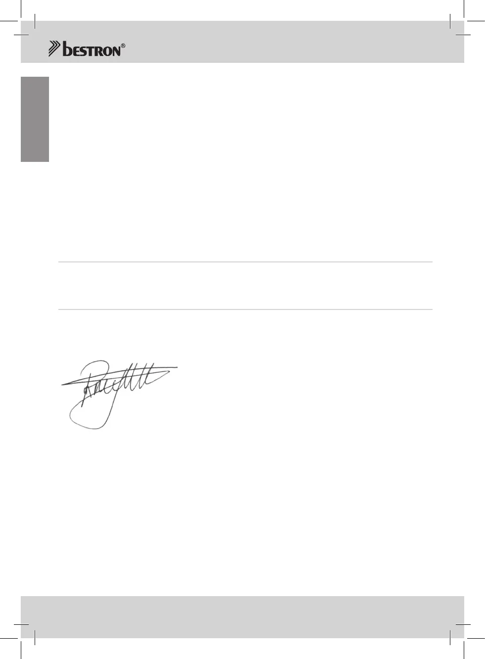 10.Om aanspraak te maken op garantie kunt u zich wenden tot uw winkelier. Bestron biedt ook de