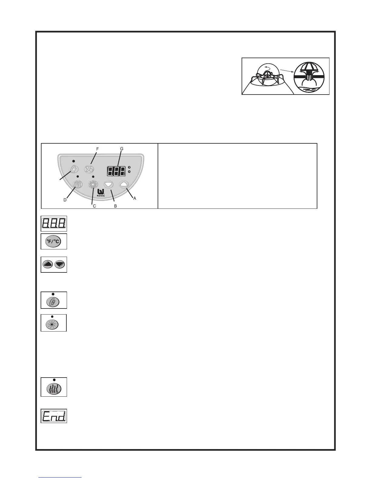 The pump will heat the spa water until the water temperature reaches 1°C (1.8°F) higher than the input desired temperature.