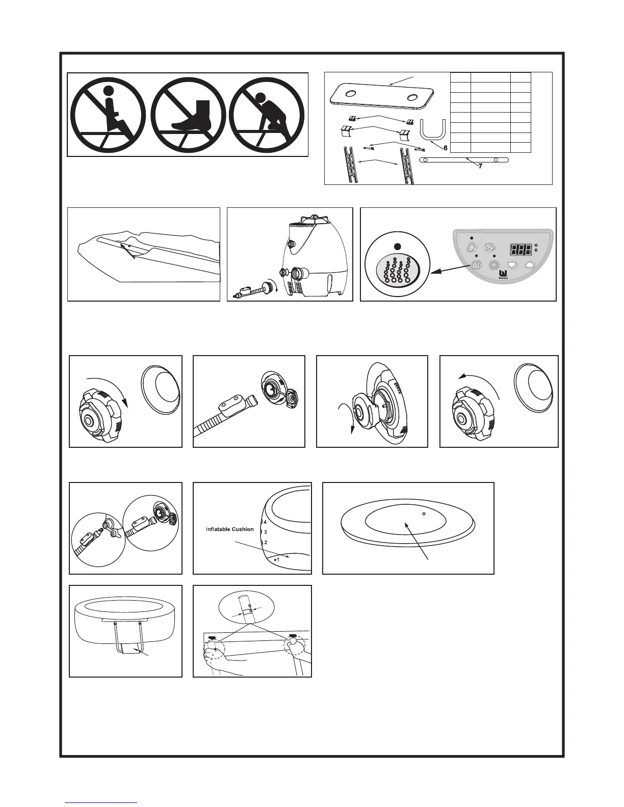 6. Using the inflation hose, inflate the spa chambers according to the printed number 1, 2, 3, 4, 5.
