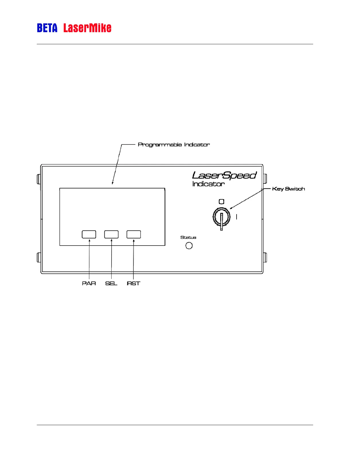 LaserSpeed. The indicator has a front panel LED that can be configured, along with