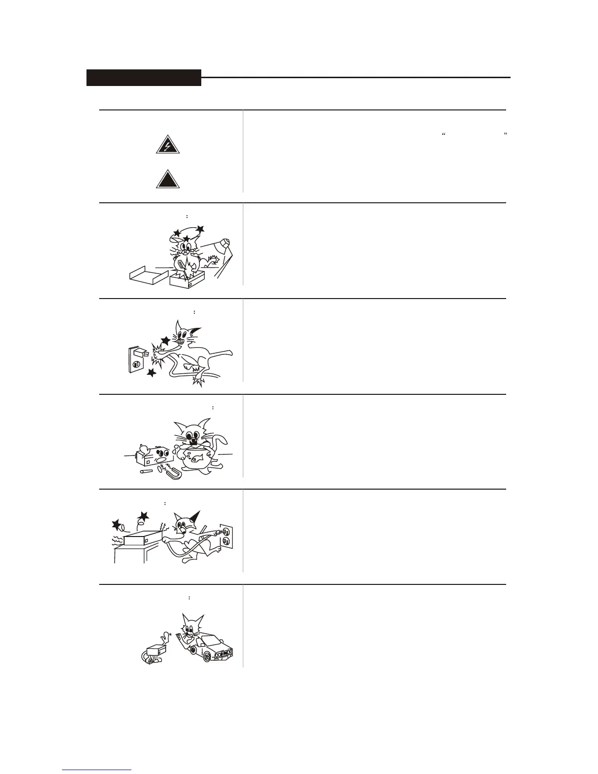 pull out or touch the cord with wet hand, or it will cause the risk of electric