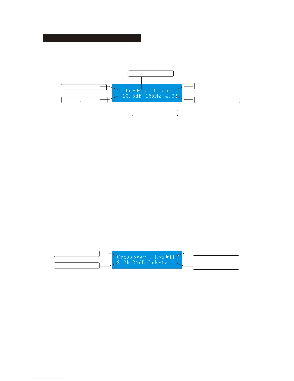 Press the crossover key to enter into the adjust interface of the output channel signal HPF