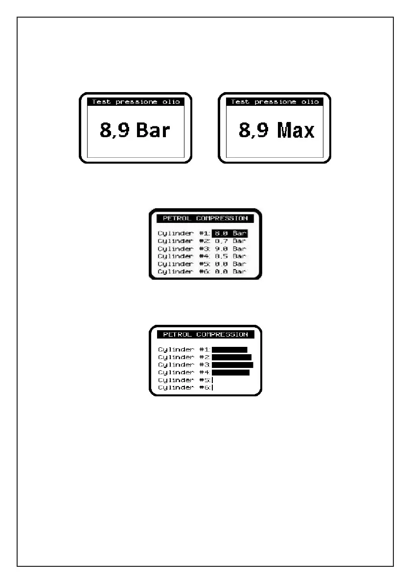 When you select “Petrol compression” or “Diesel compression”, the tester will be ready to test the