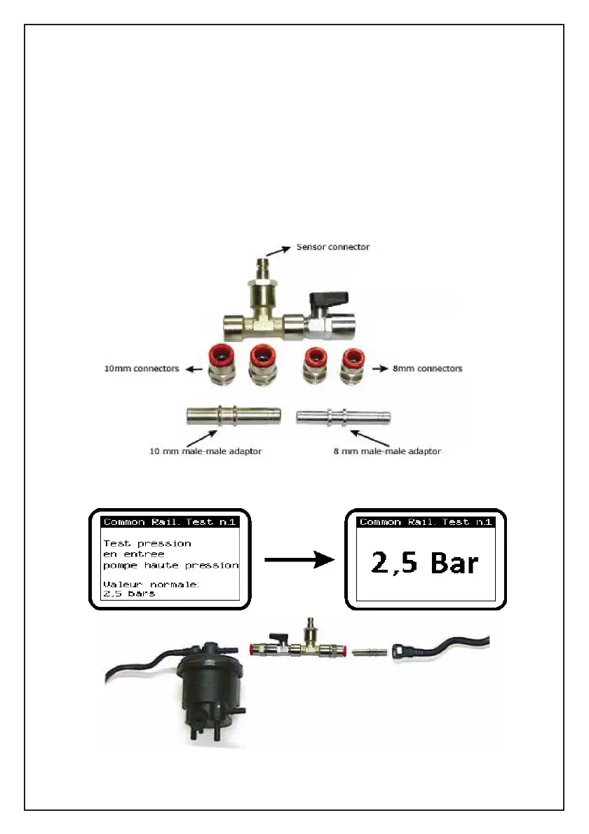 Description : test pour le contrôle de la pression à l’entrée de la pompe haute pression.