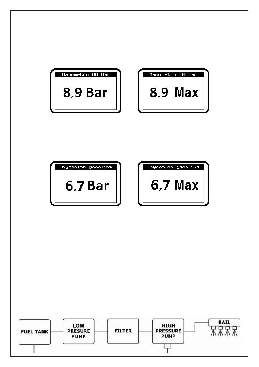 presión de la gasolina. En la pantalla aparece por defecto el valor de lectura efectivo.