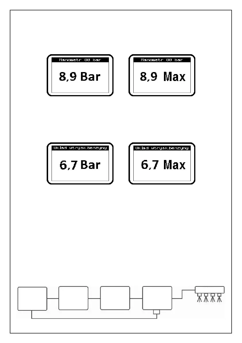 Po wybraniu trybu “Układ wtrysk.benzyny”, próbnik jest gotowy do sprawdzenia ciśnienia benzyny.