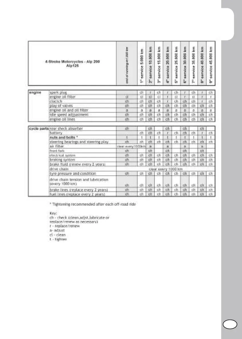 Beta ALP 125 cc - Prolonged Inactivity; After Prolonged Inactivity