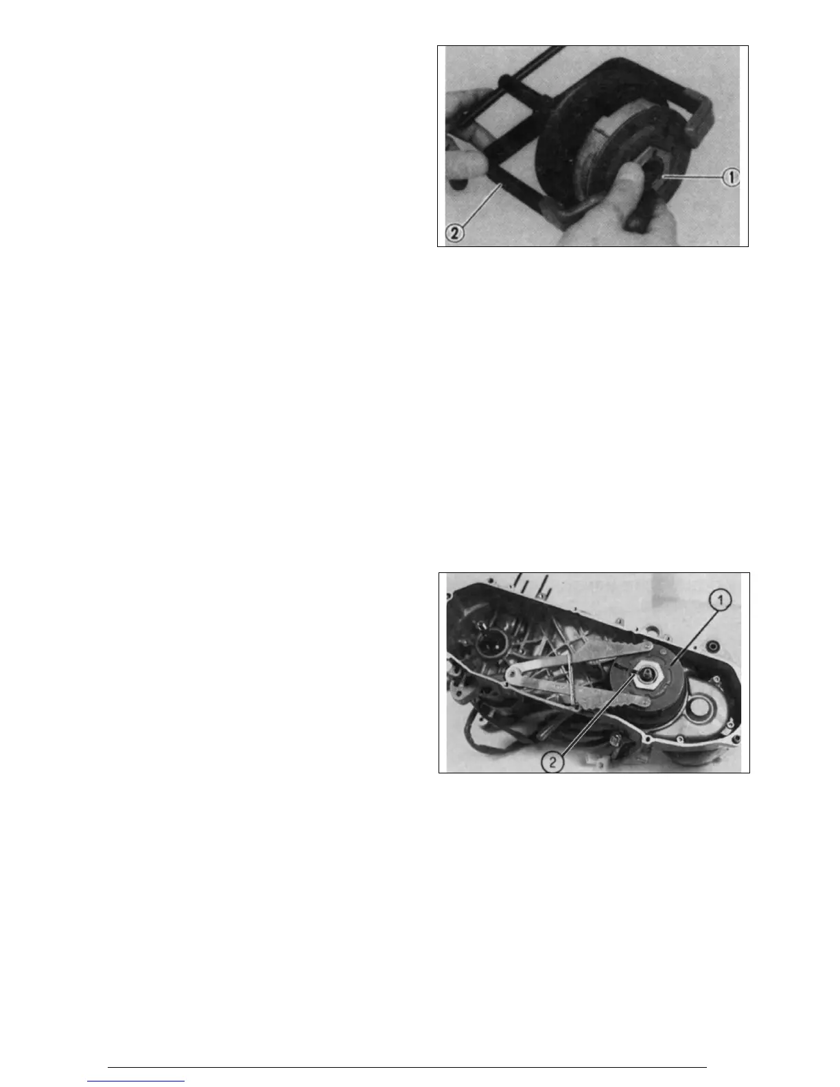 Nota: installer la poulie secondaire (1) comme illustré et le