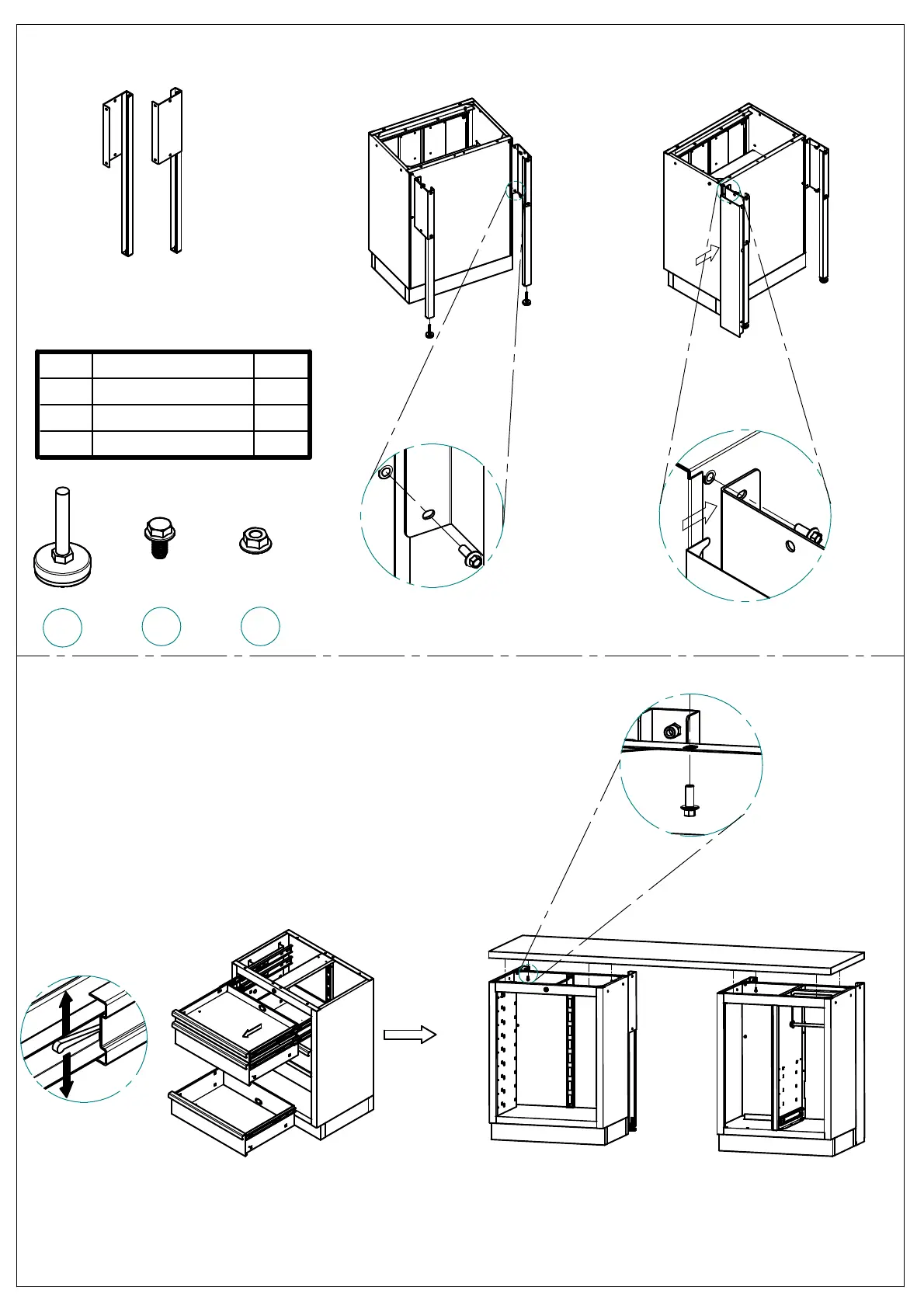 Solo i moduli sottobanco situati alle estremità della combinazione d'arredo