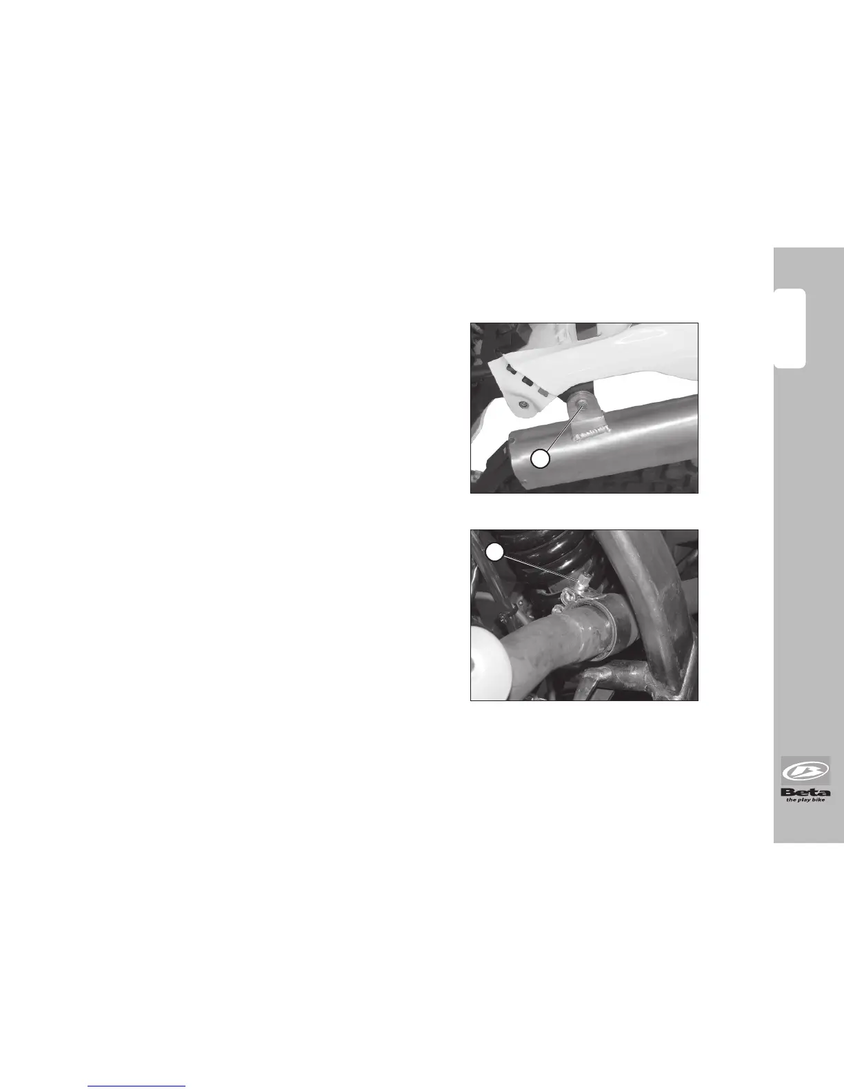 Jetzt die Schraube B entfernen, mit der der Auspuff am Rah-