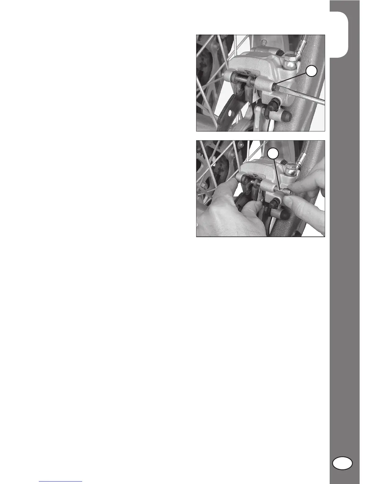 •Remove the brake pads taking care not