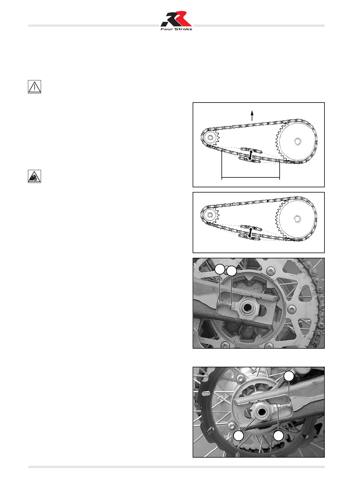 Take special care in ensuring that the lubricant does not come into contact with the rear tyre or the brake disc, oth-