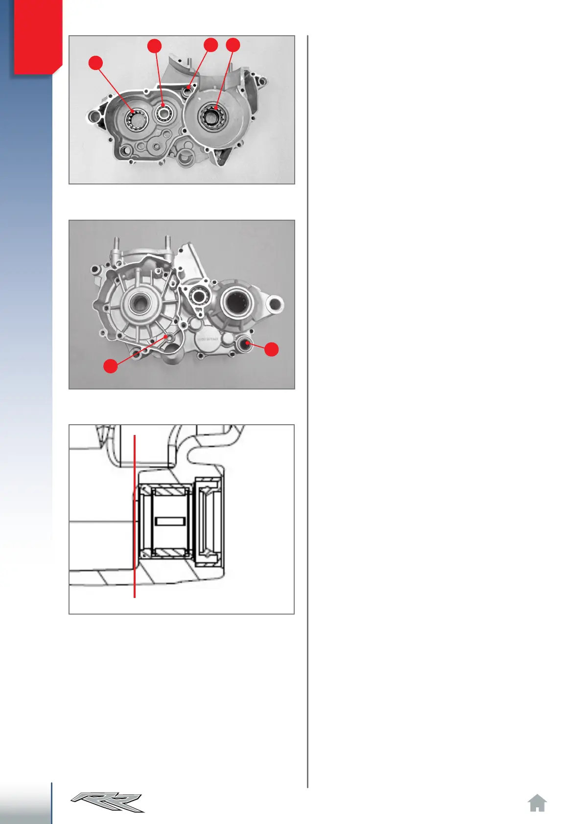 Apply the bearings 1, 2, 3 e 4 from the crankcase half