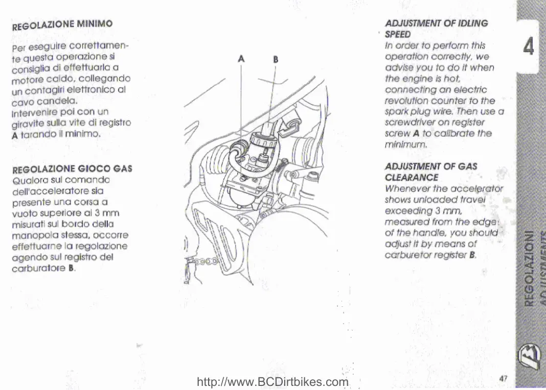 Beta TECHNO 250 - Adjustment of Idling Speed; Adjustment of Gas Clearance