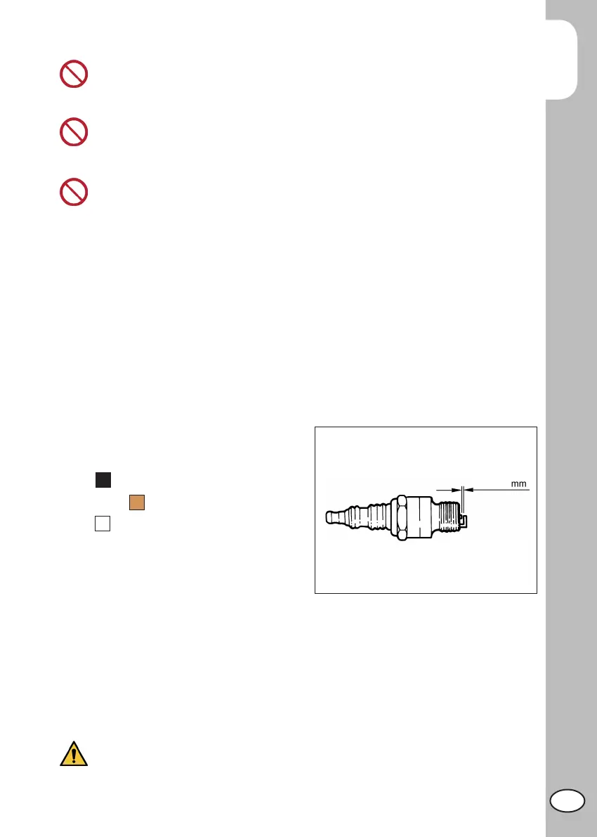 Carefully clean the electrodes using a wire brush. Blow the spark plug with com-