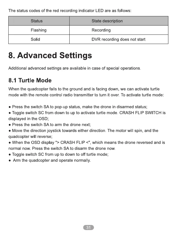 • Toggle switch SC from down to up to activate turtle mode. CRASH FLIP SWITCH is