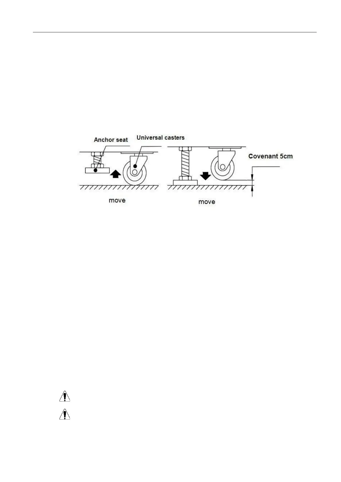 Warning: Please do not use the forklift to move the machine, otherwise