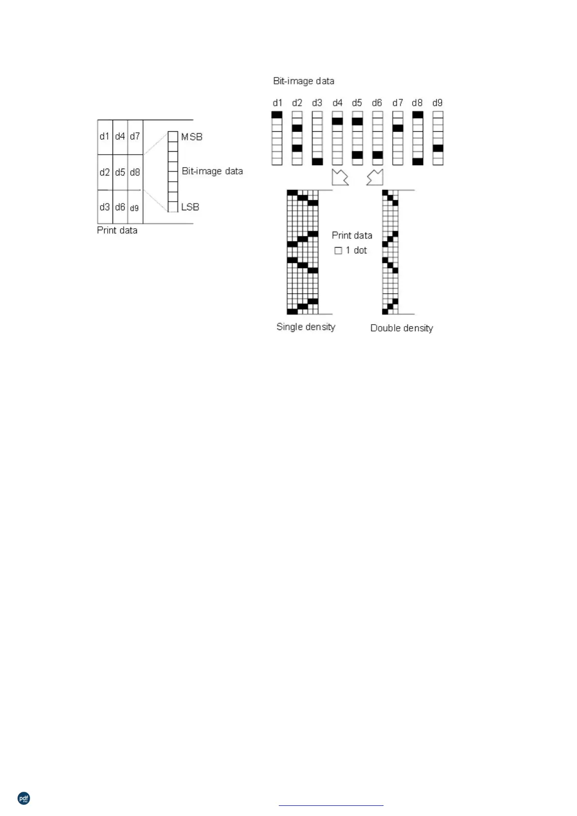 The d indicates bit-image data. Data (d) specifies a bit printed as 1