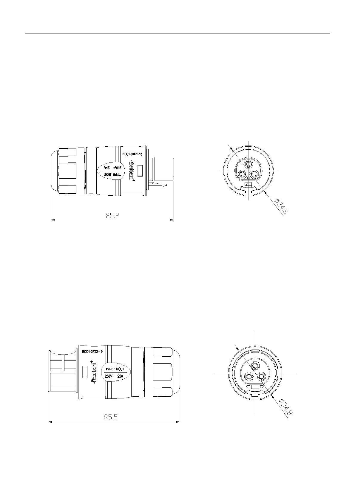 Outline of male cable connector (2+PE)