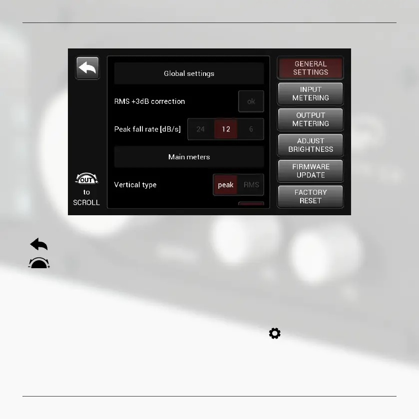 Setup screen with scrollable list of sengs