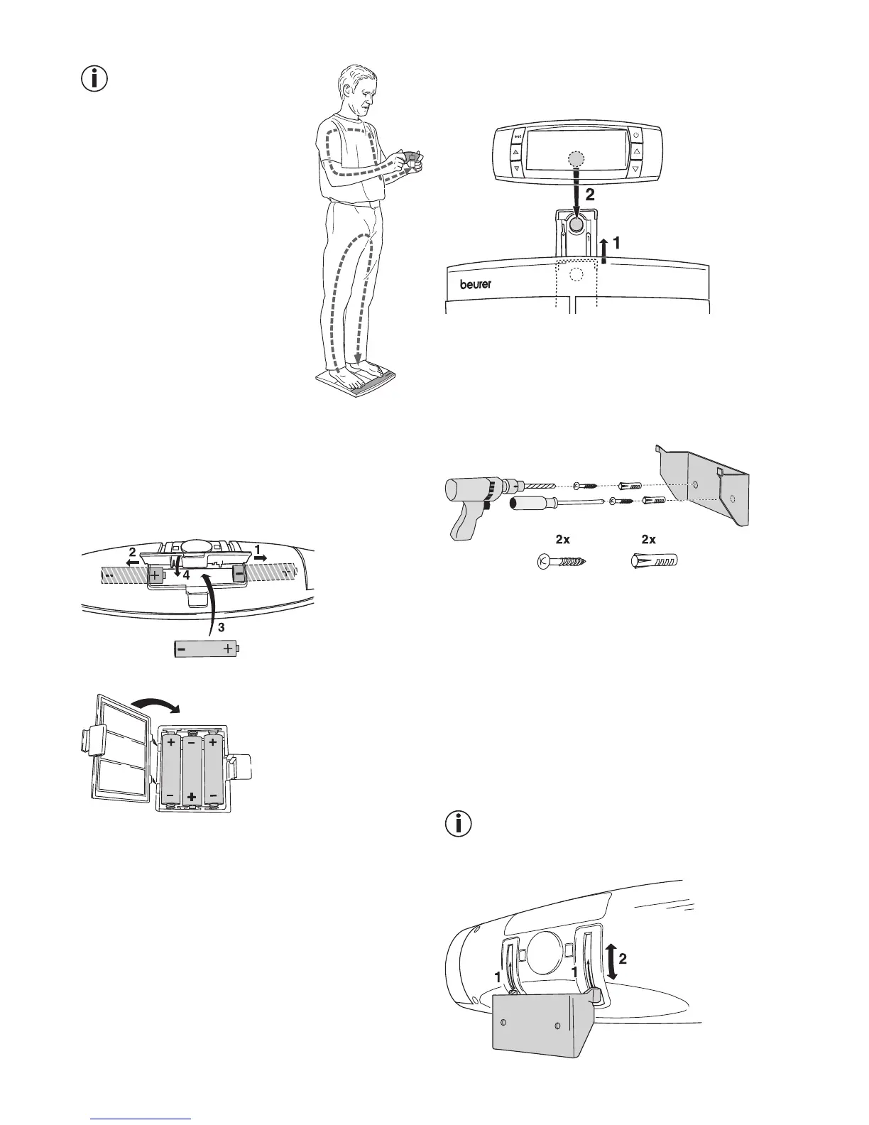 cak şekilde basküle ve kontrol ünitesine yerleştiriniz. Pil
