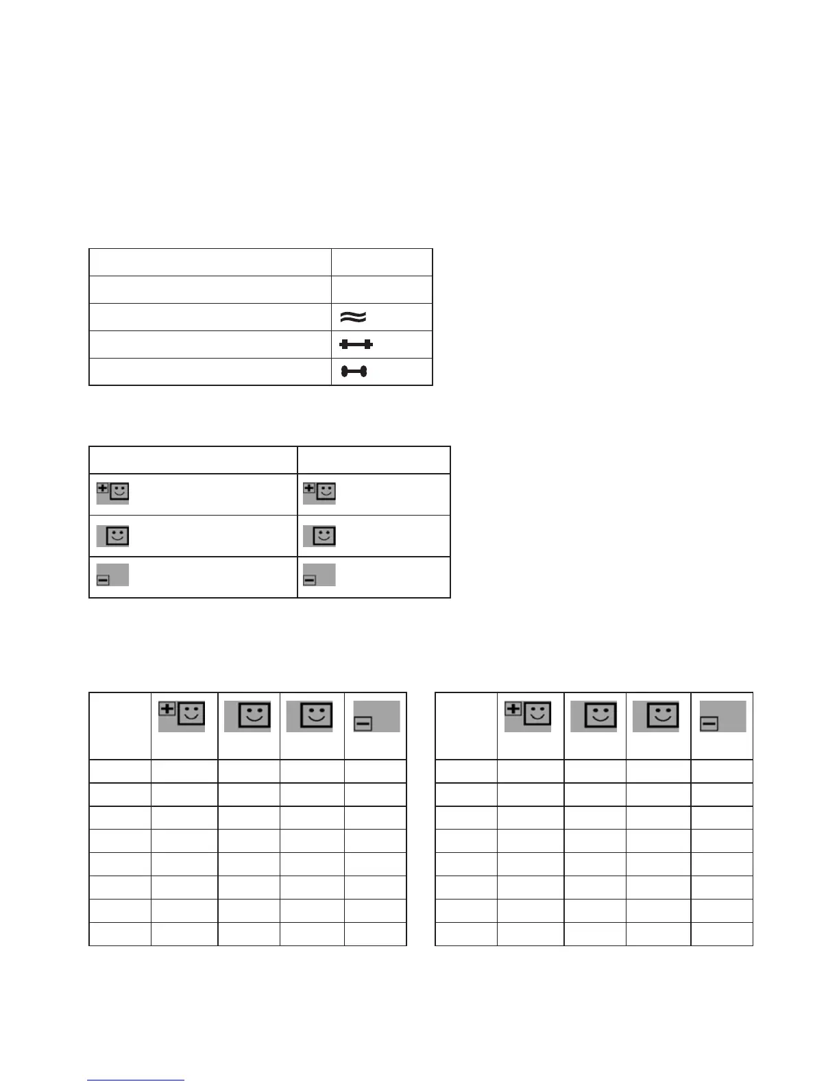 Waga interpretuje udział tkanki tłuszczowej i wody w organizmie za pomocą następujących symboli: