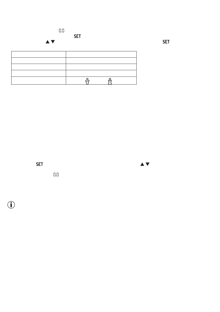Los valores ajustados así se vuelven a mostrar sucesivamente. La báscula se apaga entonces automática-