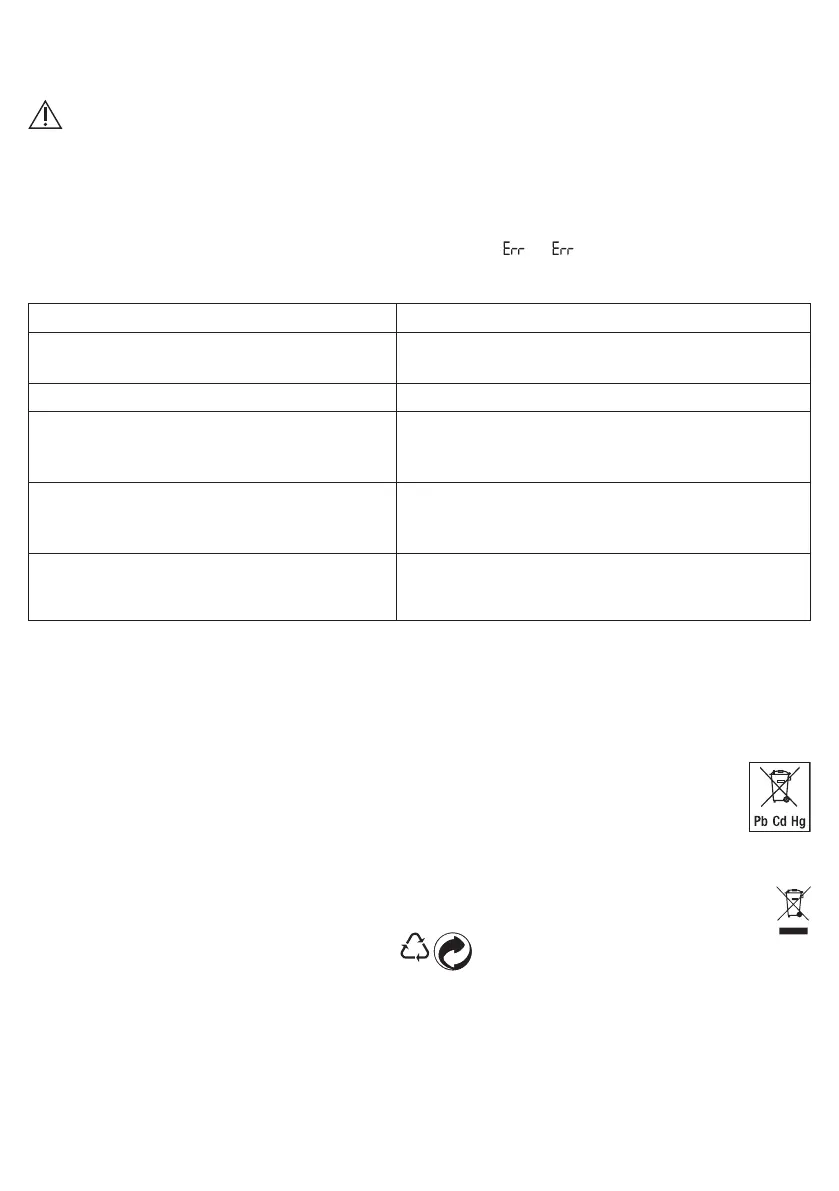 Si la báscula detecta un error durante la medición, se visualizará “ 2”/“ ”.