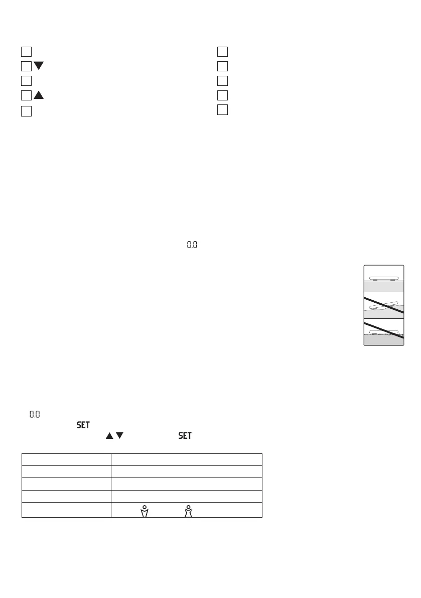 • Teraziyi düz ve sert bir zemine yerleştirin; doğru ölçüm için sert bir zemin şarttır.