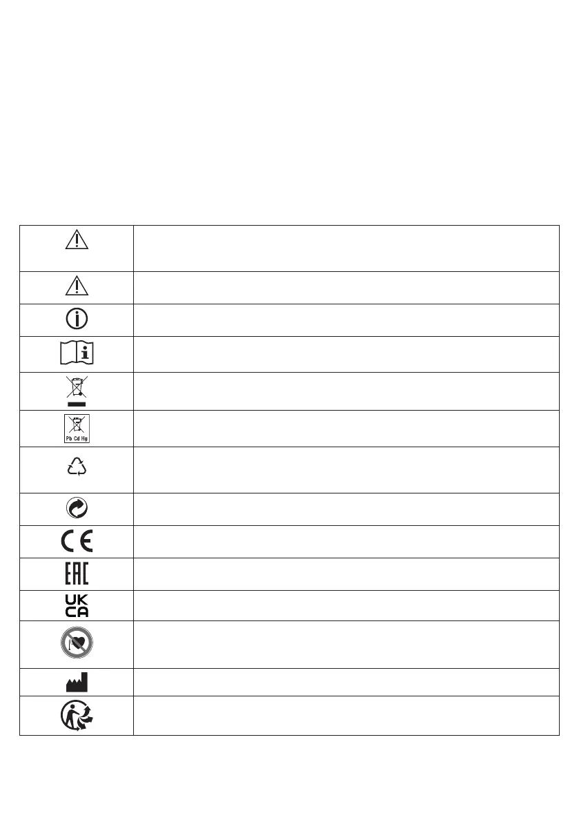 Op het apparaat, in de gebruiksaanwijzing, op de verpakking en op het typeplaatje van het apparaat worden