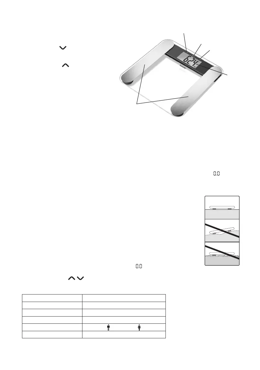 • Установите весы наровную твердую поверхность; твердая поверхность