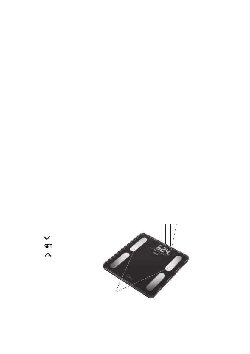 • Wichtig bei der Messung: Die Ermittlung des Körperfettes darf nur barfuß und kann zweckmäßig mit