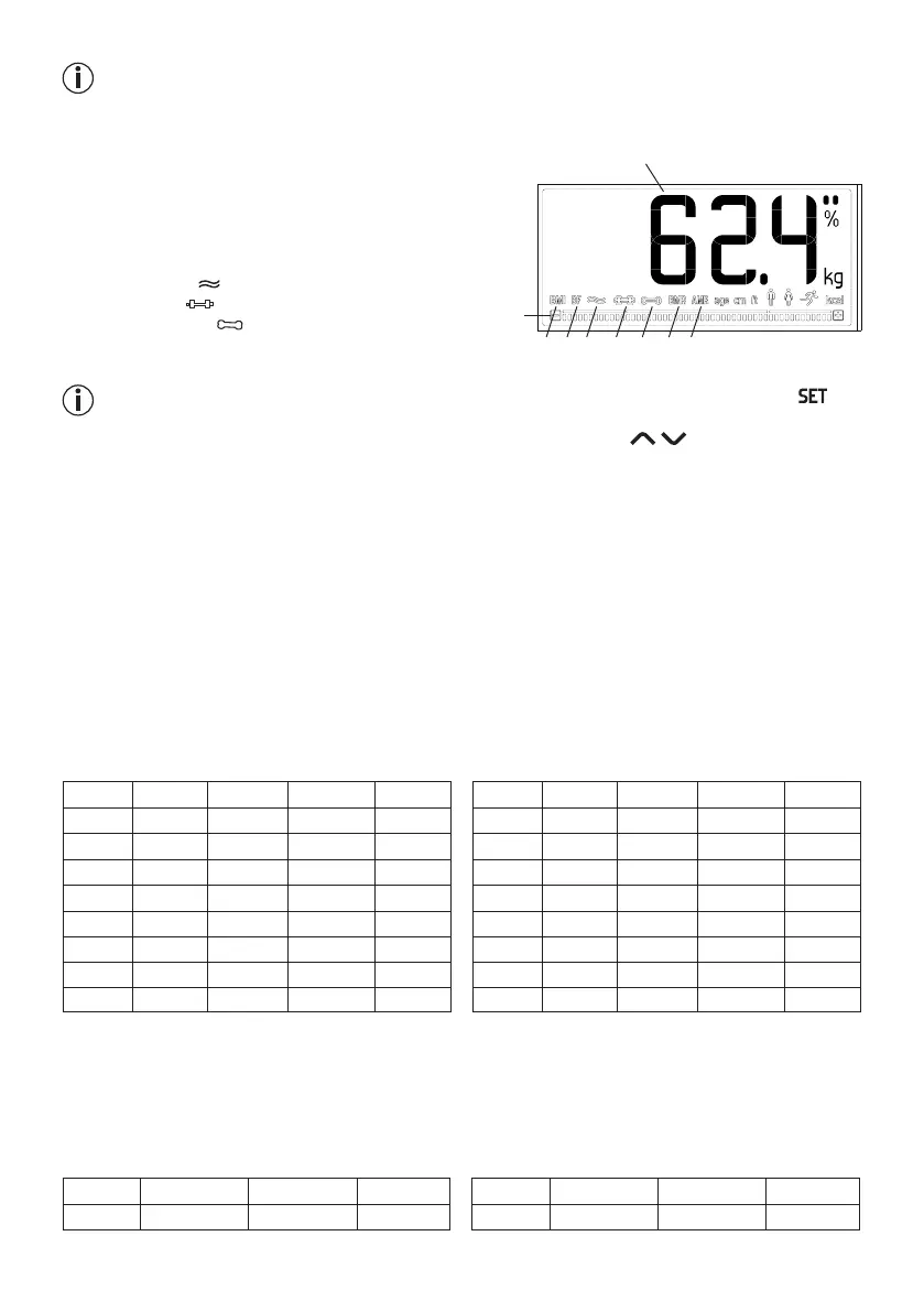 % olarak belirtilen aşağıdaki vücut yağı değerleri referans olarak verilmiştir (lütfen ayrıntılı bilgi için doktoru