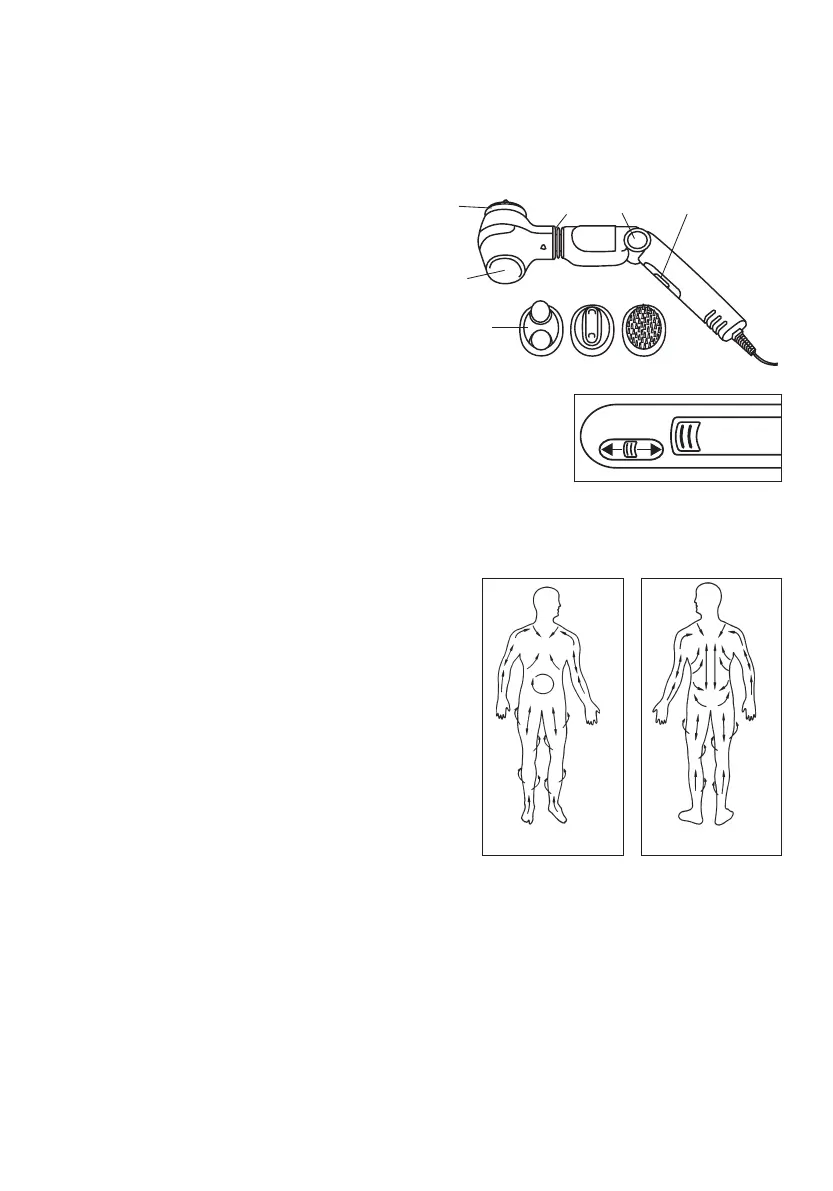 Masaj başlığındaki döner eklemle ve tutacağın bükme açısını