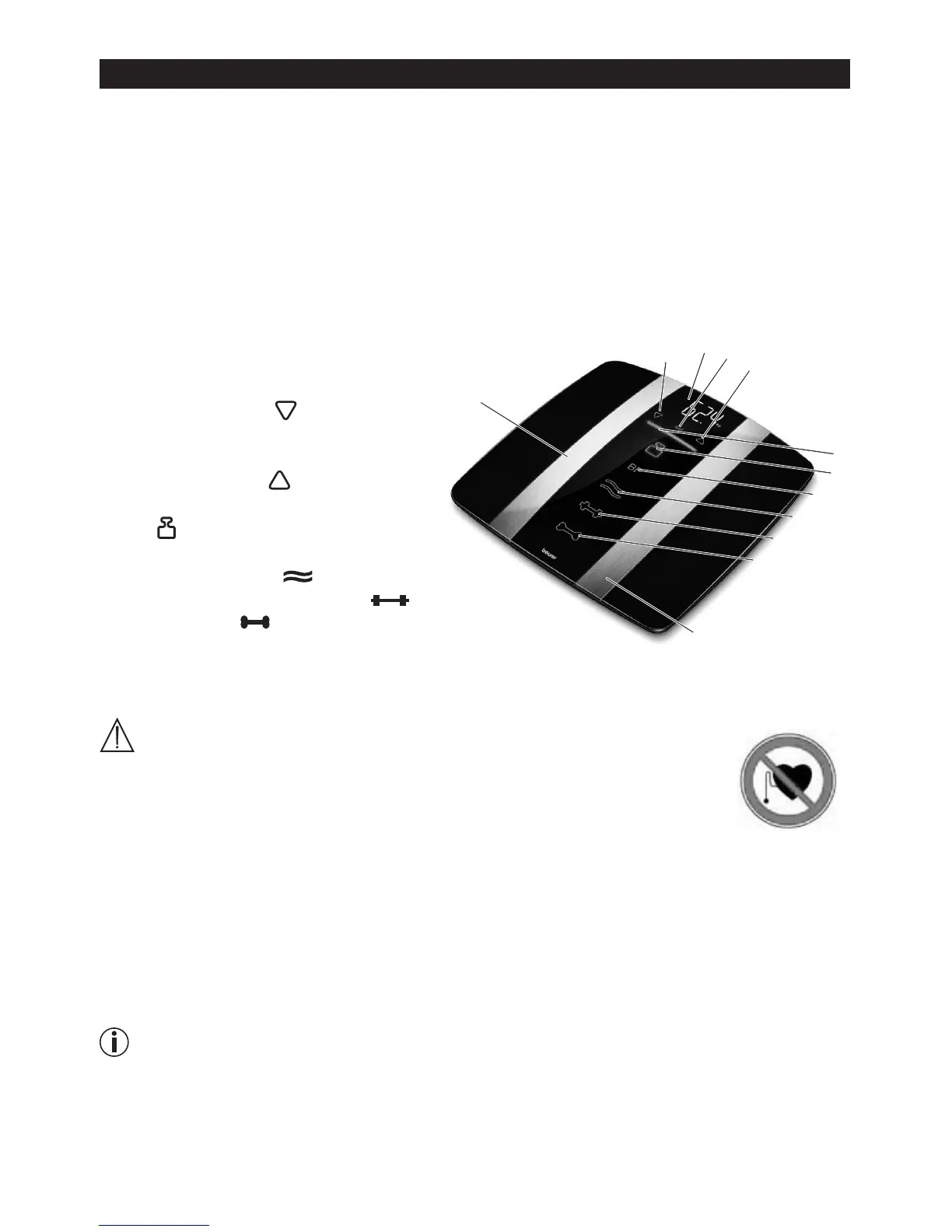 • Внимание!Нестановитесьнавесы,еслиВашиногиилиповерхностьвесовмокрые-