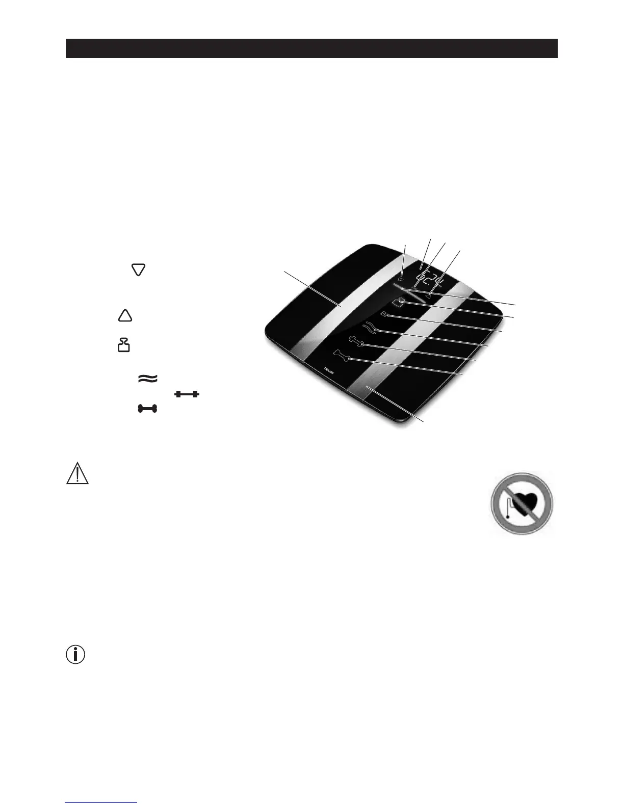 • Thescalesmustnotbeusedbypersonswithmedicalimplants(e.g.heartpace-