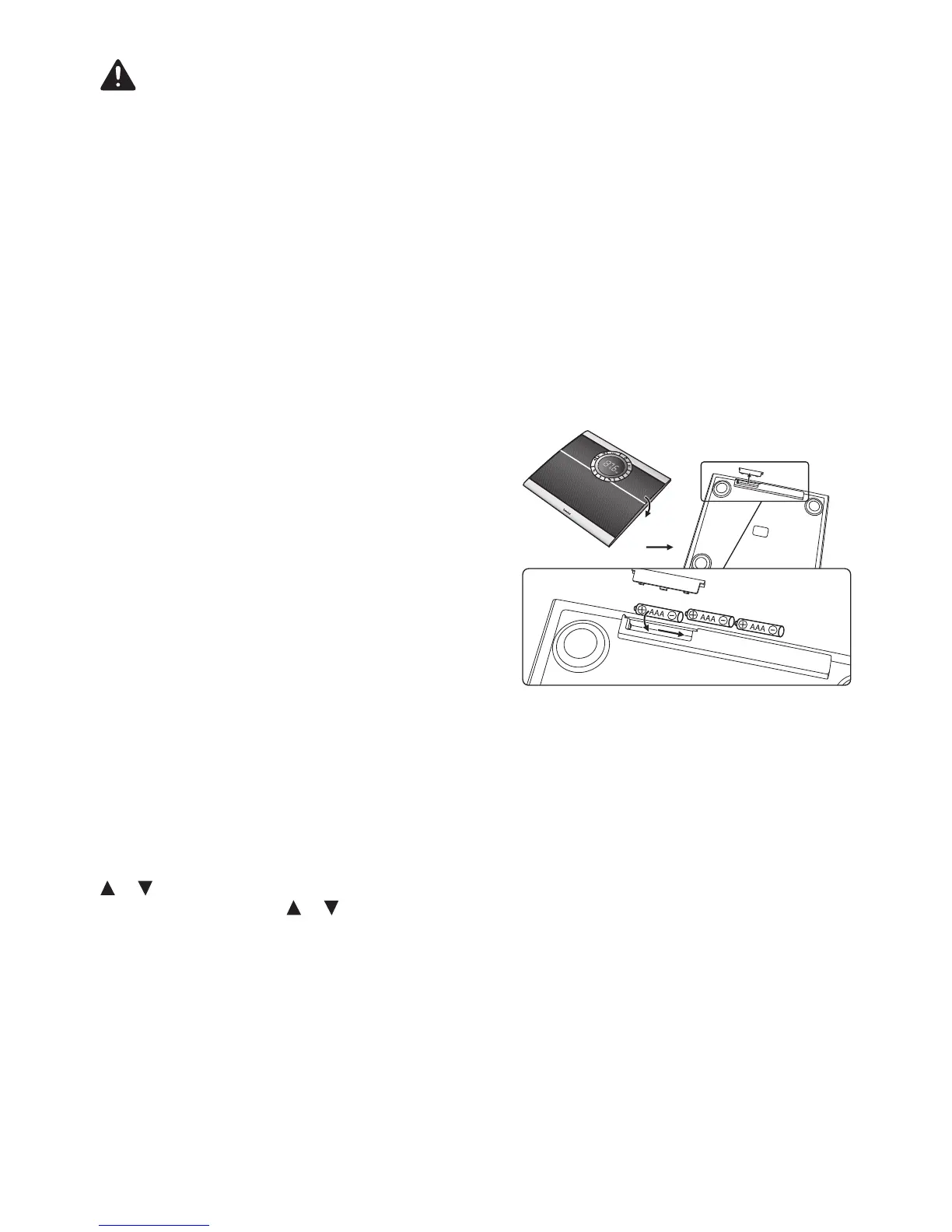 Leaking batteries may damage the device. If you do not intend to use the scale for longer periods,