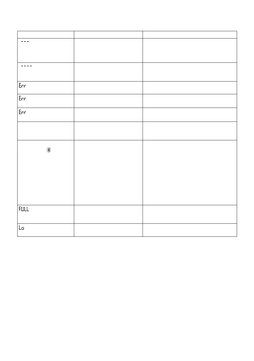 Stellt die Waage bei der Messung einen Fehler fest, wird folgendes angezeigt: