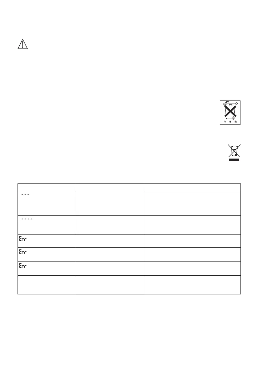 Terazi, ölçüm esnasında bir hata tespit ederse şu görüntülenir: