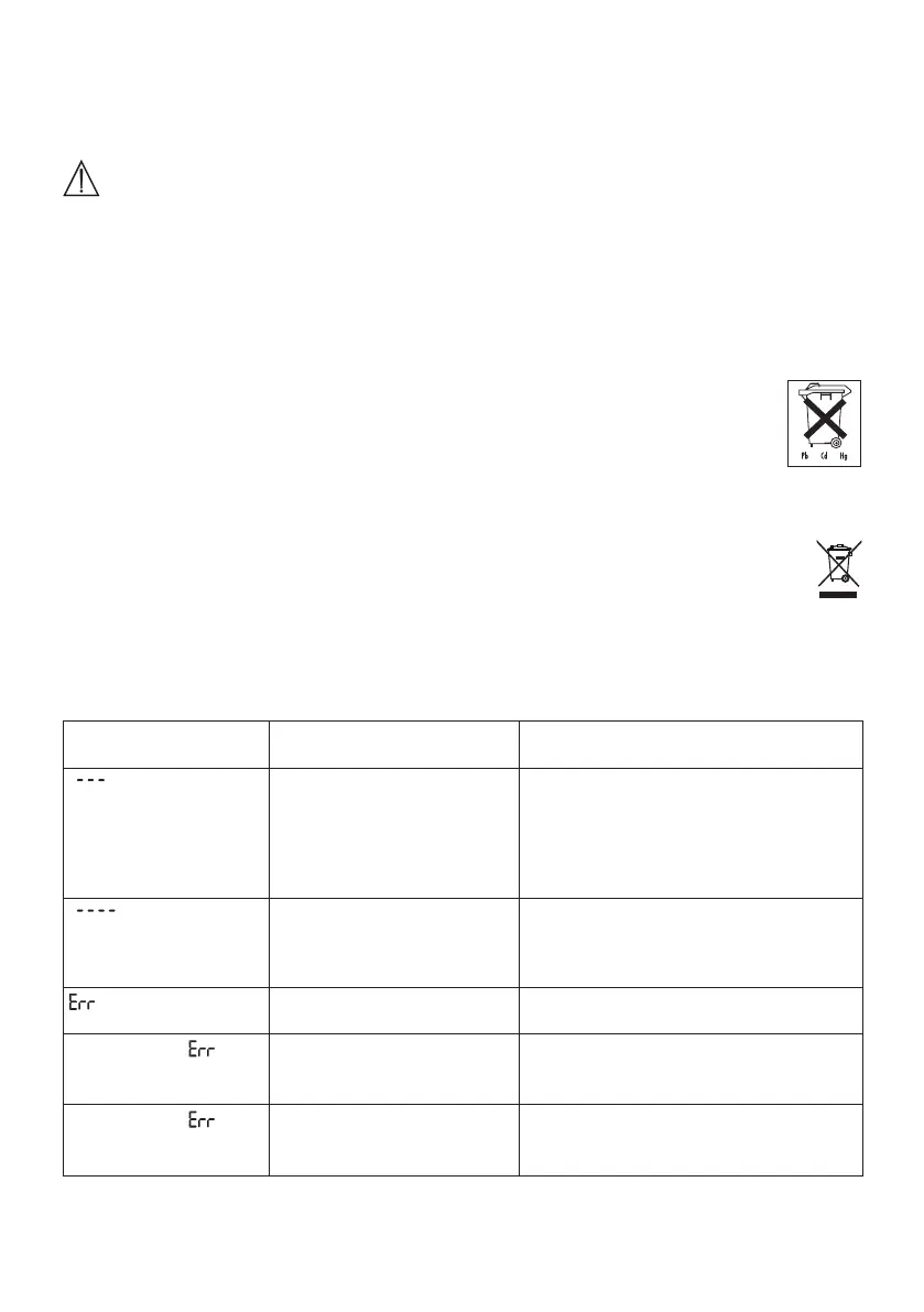 Если при измерении весы регистрируют неисправность, на дисплее отобразится следующее: