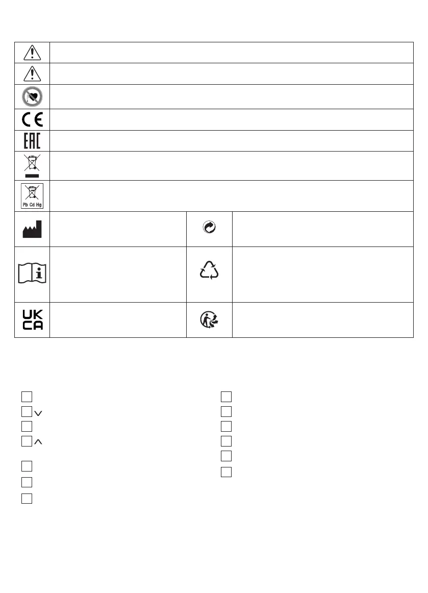 Følgende symboler anvendes på apparatet, ibetjeningsvejledningen, på emballagen og på apparatets typeskilt: