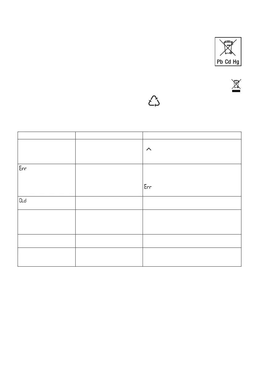 Terazi, ölçüm esnasında bir hata tespit ederse şu görüntülenir: