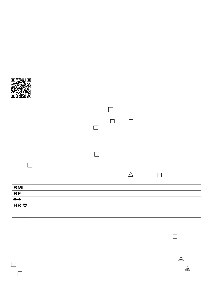 • Seiso aina kehon rasvapitoisuuden mittaamisesta sykkeen/pulssin mittaamiseen saakka pystyasennossa