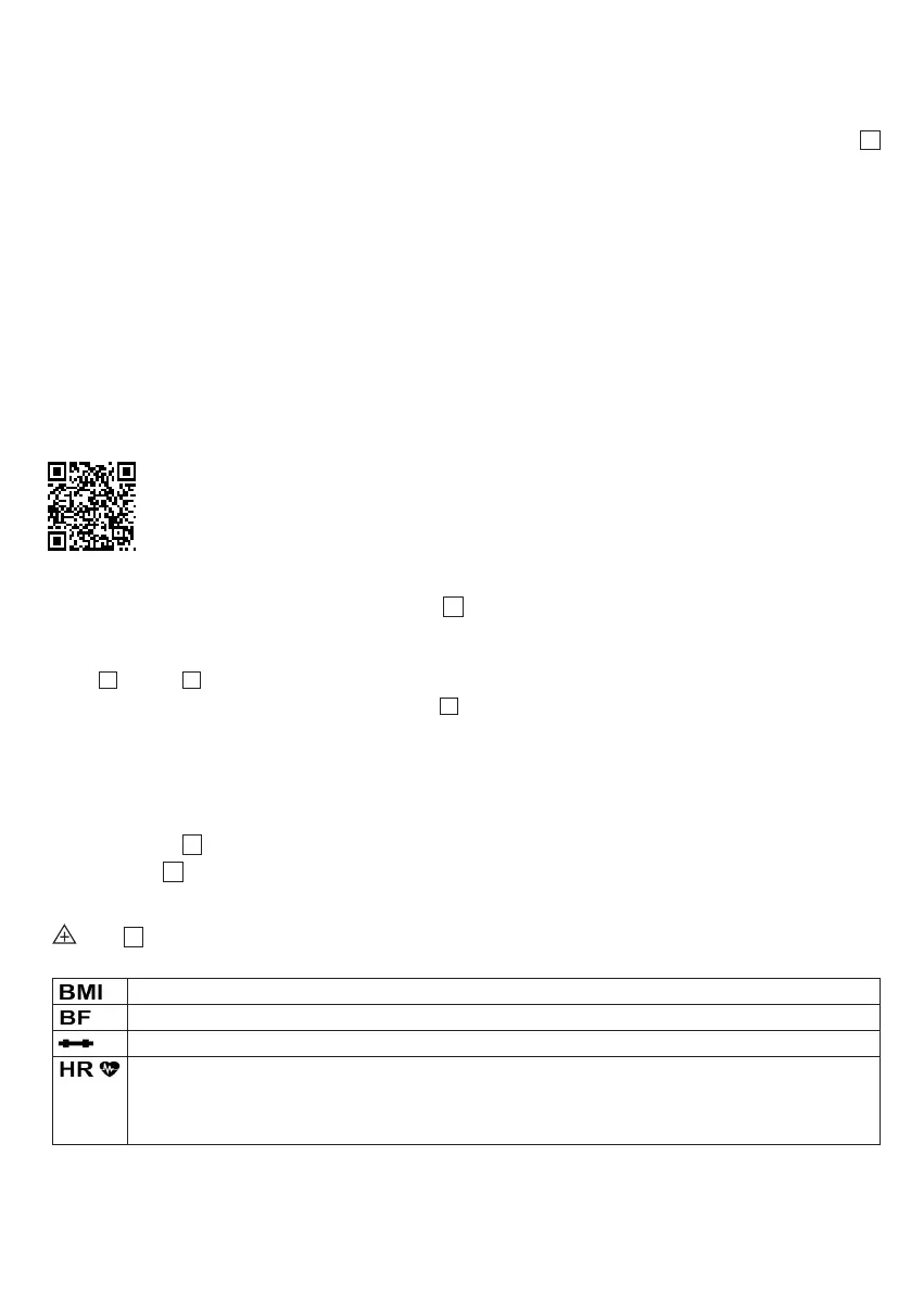 • Ga voor het vaststellen van het lichaamsvet en de hartslag/polsslag altijd met blote voeten op de elektrodes