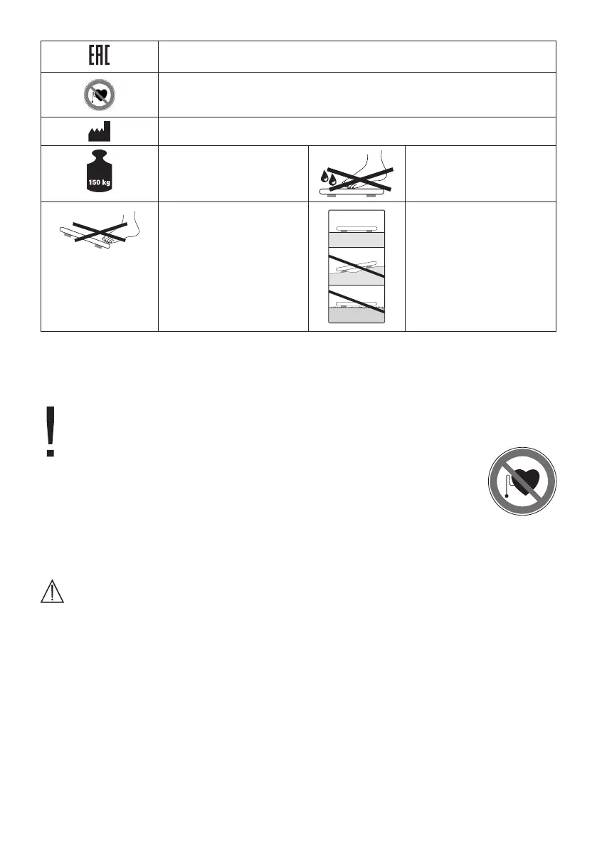 • The scales must not be used by persons with medical implants (e.g. heart pacemak-