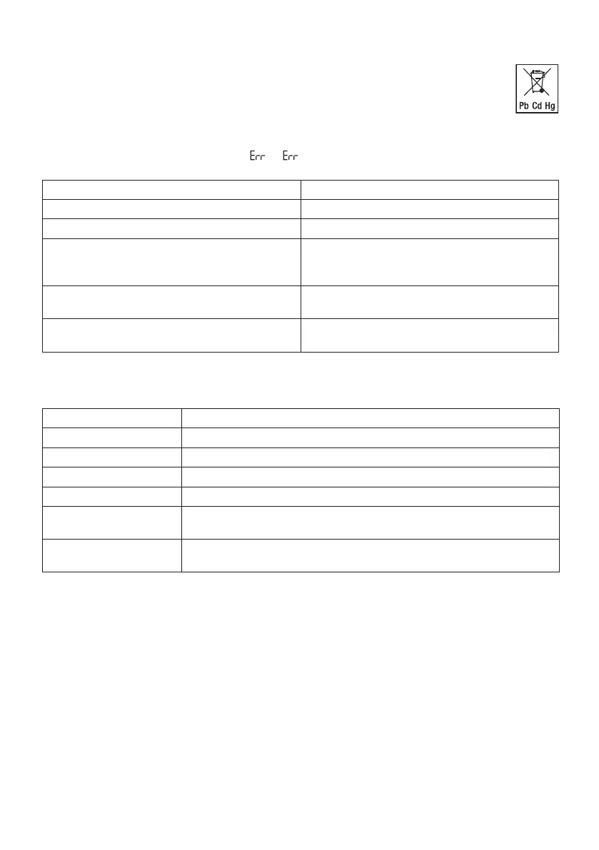 Tartı, tartma işleminde bir hata saptadığında “ 2”/“ ” göstergesi belirir.