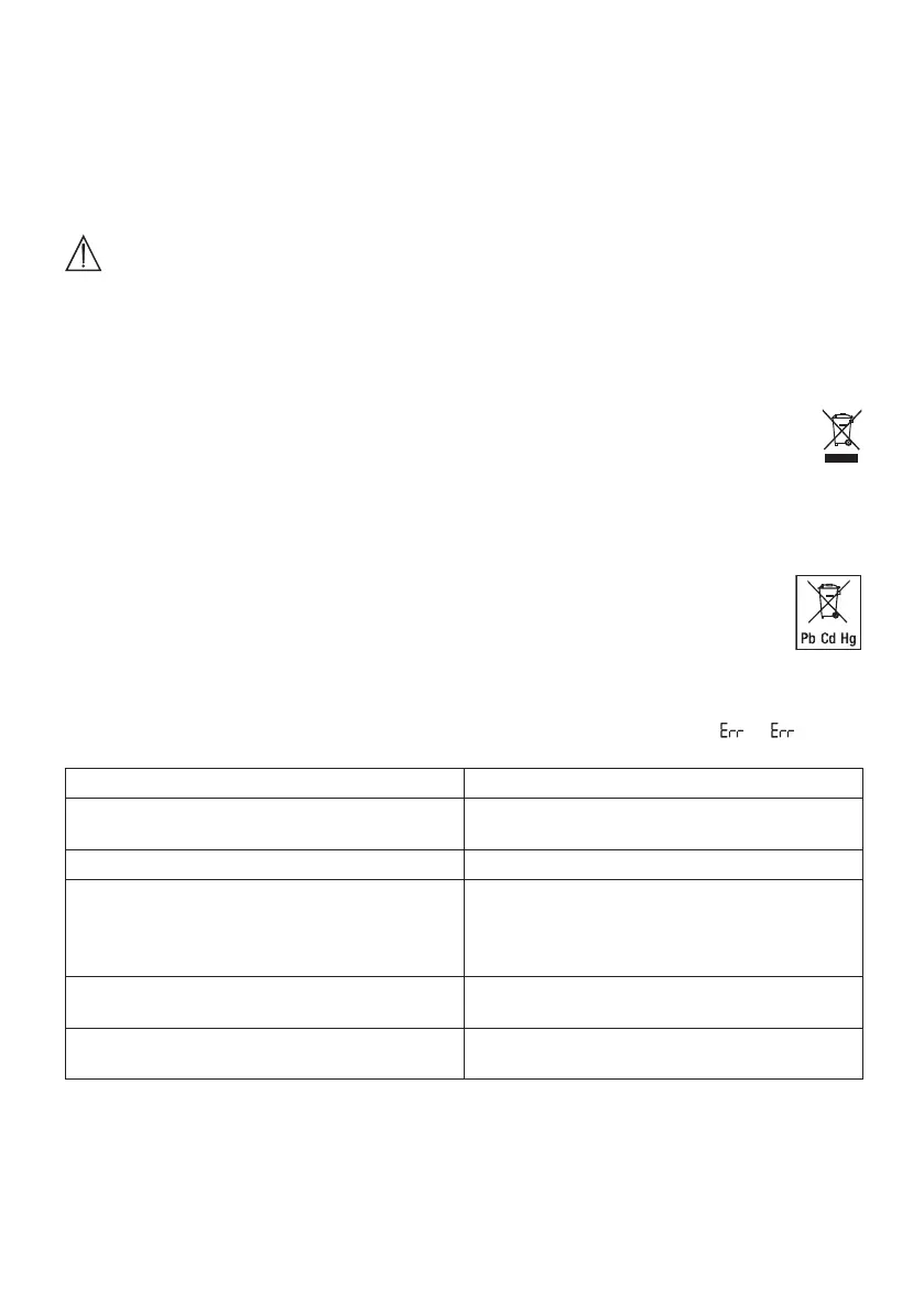 Jeżeli waga wykryje jakiś błąd w czasie realizowanego pomiaru, na wyświetlaczu pojawi się „ 2”/„ ” (błąd).