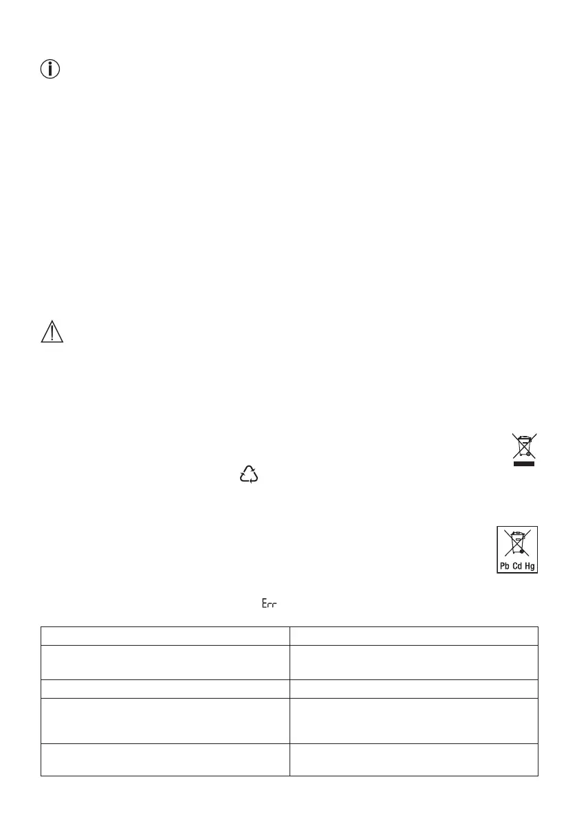 Tartı, tartma işleminde bir hata saptadığında “oL”/“ ” göstergesi belirir.