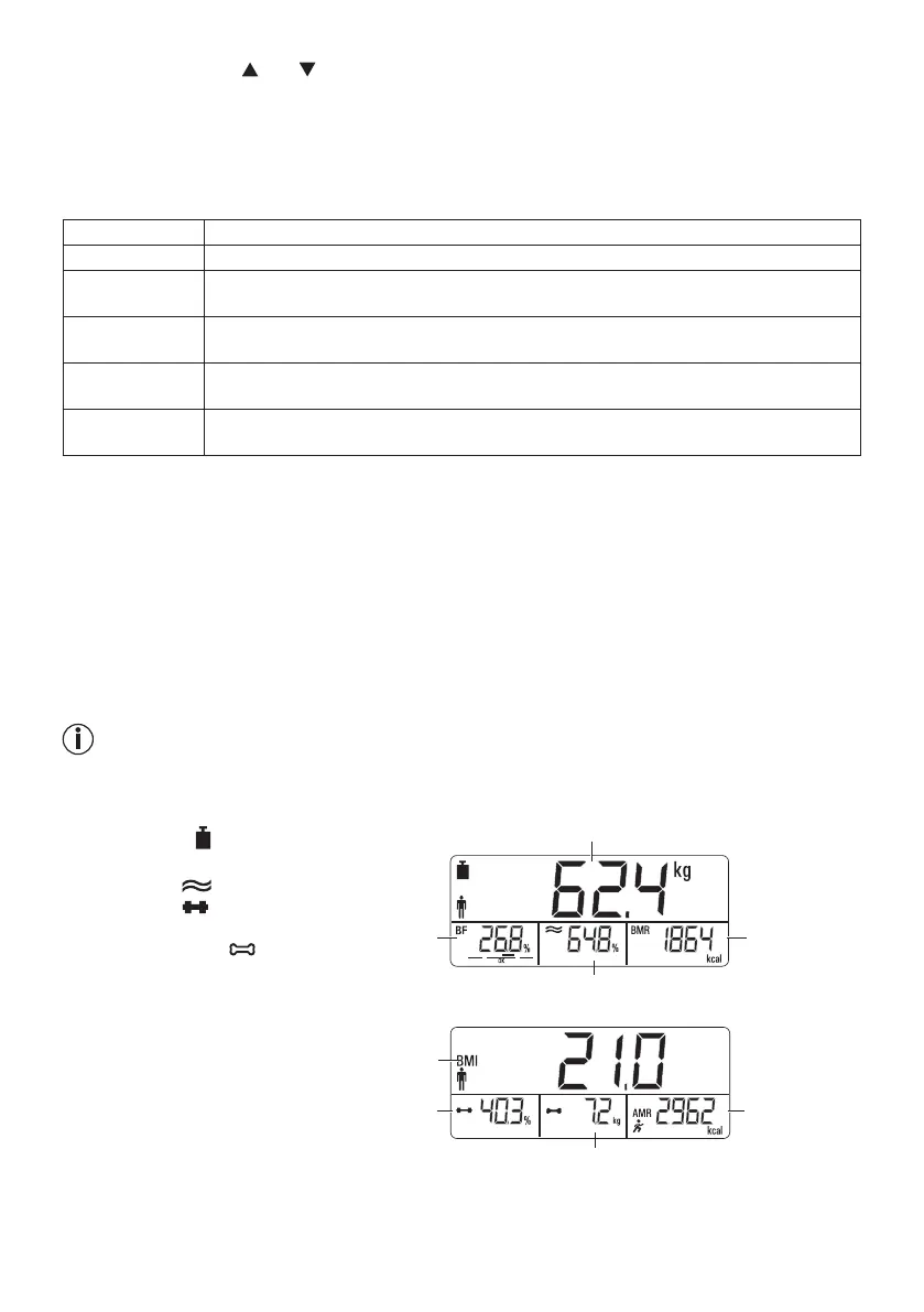 Nachdem alle Parameter eingegeben wurden, können nun Gewicht, Körperfett und die weiteren Werte ermittelt