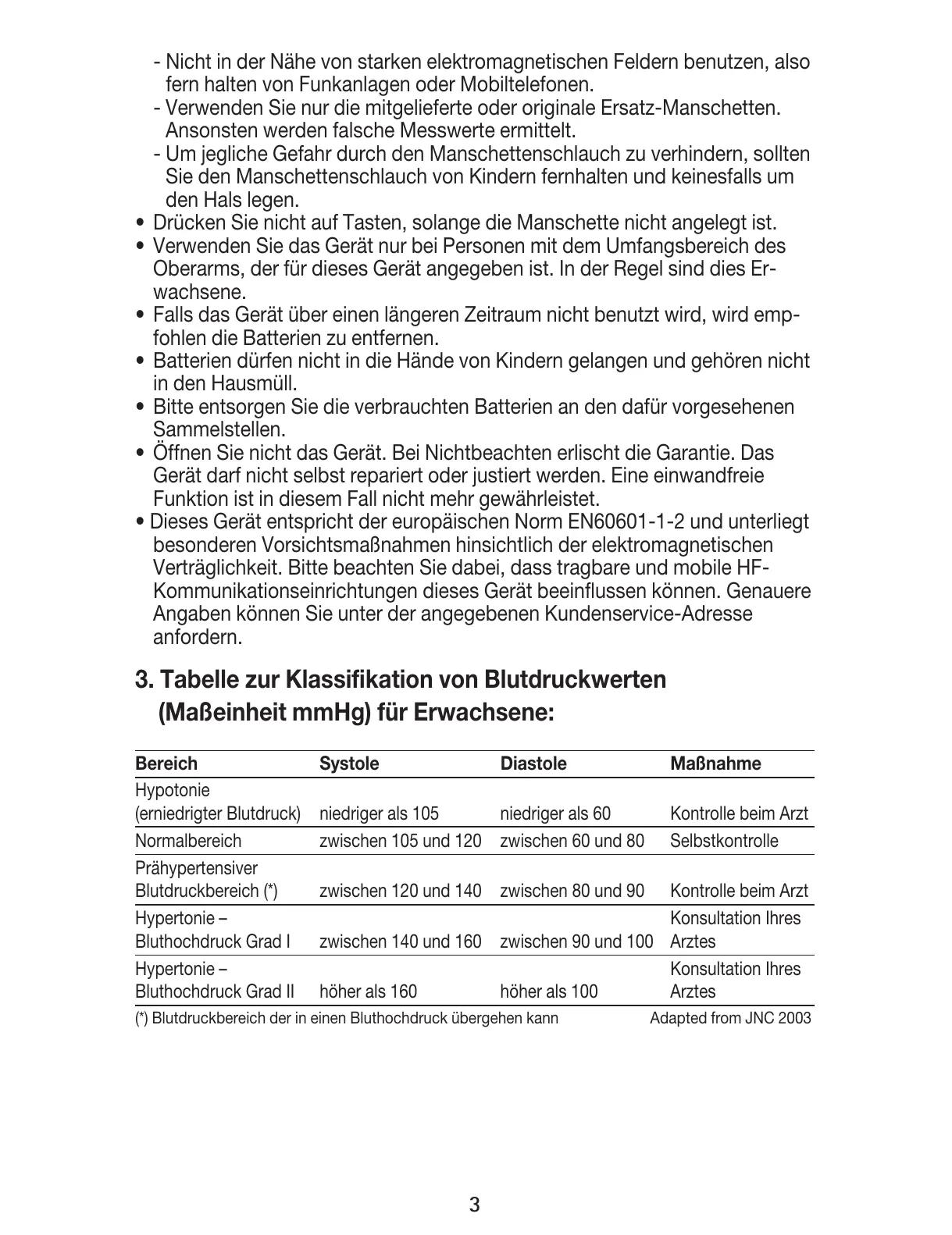 3. Tabelle zur Klassifikation von Blutdruckwerten